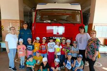 В процессе экскурсии начальник караула Ситников Егор Юрьевич рассказал и показал ребятам, как проходят будни пожарных. Показали костюм пожарного, устройство машины, рассказали для чего служит оборудование, находящееся в машине; примеряли и элементы костюма пожарного, и конечно, исполнили желание каждого ребёнка - разрешили посидеть в пожарной машине. Эмоциями от экскурсии ребята делились со взрослыми и между собой.