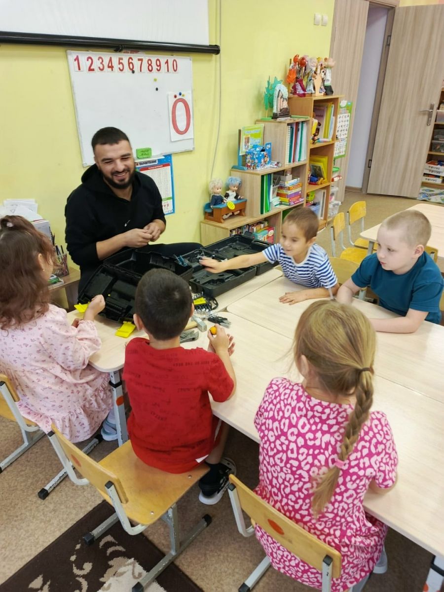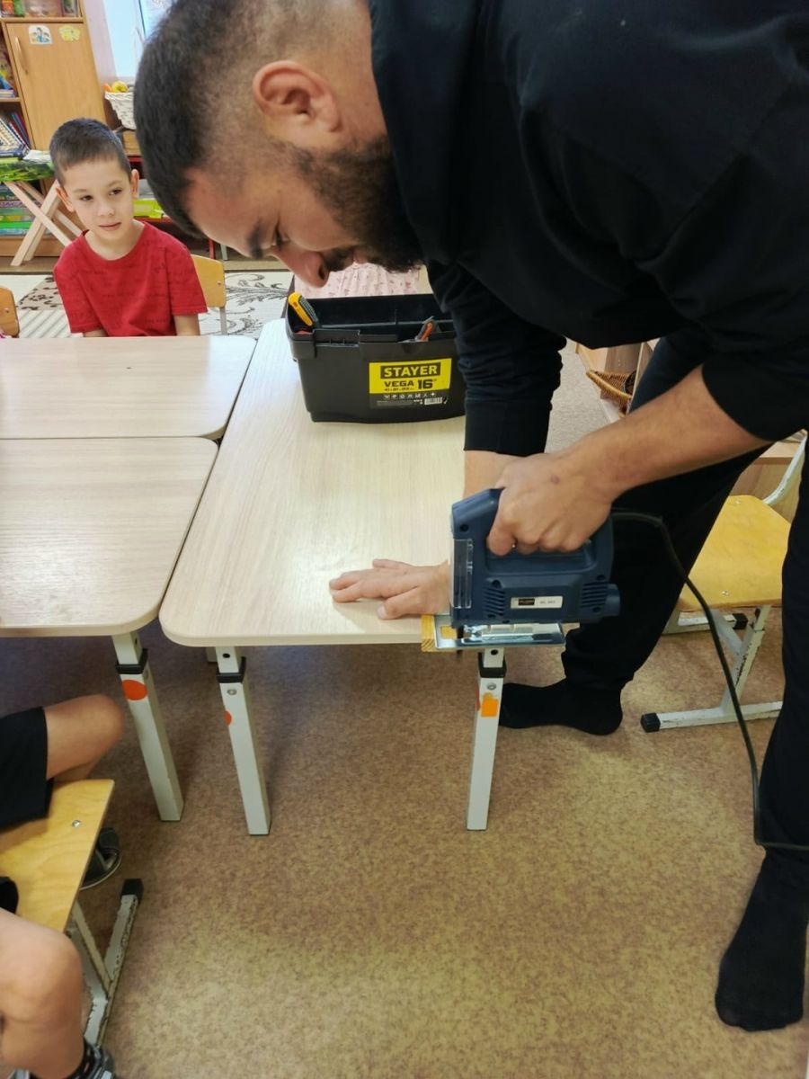 В преддверии этого праздника, папа Алиев Эльвин Сулиддин Оглы, приходил в гости в подготовительную к школе группу №6 "Радуга", чтобы показать и рассказать об инструментах, которыми пользуются дома и на работе наши мужчины. Детям было очень поучительно и интересно.