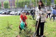 Лопаты и саженцы будут выдаваться на месте.