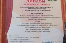 Всеросийский фестиваль-конкурс детского творчества "Театральная палитра". Диплом лауреата 3 степени в номинации "Лучшее литературное произведение", 5-7 лет 27.02.2023