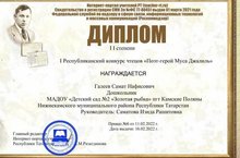 Республиканский конкурс чтецов "Поэт-герой Муса Джалиль" Поздравляем Галеева Самата, воспитанника подготовительной к школе группы 5 и руководителя Саматову Изиду Рашитовну с победой- Диплом II степени! 21.02.2022
