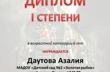 Районный фестиваль-конкурс патриотической песни "Песни, рождённые сердцем" прошёл на базе МАУ "Культурный центр"Чулман-Су" пгт Камские Поляны. Баяндин Риналь, воспитанник подготовительной к школе группы 6 и музальный руководитель Спиридонова Разия Хакимовна награждены Дипломом лауреата II степени в номинации: "Вокал-соло". 19.02.2022
