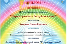 II Республиканский конкурс «Народы разные – Республика одна!»: воспитатель Закирова Л.Р. – Диплом III степени в номинации «Лучшее блюдо национальной кухни «Кулинарные этюды!». Поздравляем!!! 21.03.2021