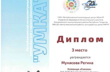 Республиканская интеллектуальная олимпиада для детей старшего дошкольного возраста «Умка» (3 этап): команда "Сказка" (воспитанники подготовительной к школе группы №10: Ваняшин Артём, Шувалова Кира, Караваева Яна, Асхатова Алсу, Мукасова Регина) и Енизеркина Л.Н., Гребнева И.Г. – Диплом 3 место. Поздравляем!!! 31.03.2021