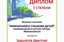 Городской конкурс рисунка «Нижнекамск глазами детей», посвященный 55-летию города Нижнекамска. Завьялов Дмитрий и Алешина А.В.– Диплом I степени; Мишакин Даниил и Сергеева Т.А.– Диплом I степени; Хайбуллина Ясмина и Благодарова И.В.– Диплом I степени; Игошев Данил и Благодарова И.В.– Диплом I степени; Дубинин Константин и Благодарова И.В.– Диплом I степени; Волков Алексей и Благодарова И.В.– Диплом I степени; Уткина Ульяна и Терехина Н.И.– Диплом II степени; Асхатова Алсу и Енизеркина Л.Н.– Диплом II степени; Банников Антон и Енизеркина Л.Н. – Диплом II степени; Жукова Екатерина и Гребнева И.Г.– Диплом II степени; Шувалова Кира и Енизеркина Л.Н.– Диплом II степени; Гребнева Ангелина и Гребнева И.Г.– Диплом III степени; Кандратиева Валерия и Енизеркина Л.Н.– Диплом III степени; Каримов Шамиль и Елистратова Т.А.– Диплом III степени; Никитин Илья и Енизеркина Л.Н.– Диплом III степени; Стрючкова Виктория и Енизеркина Л.Н.– Диплом III степени; Царева Валерия и Сергеева Т.А.– Диплом III степени; Чайников Вадим и Елистратова Т.А.– Диплом III степени; Сычева Злата и Царева Т.Н.– Диплом III степени; Царев Артем и Терехина Н.И.– Диплом III степени; Царев Артем и Благодарова И.В.– Диплом III степени. 04.03.2021