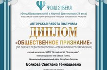 Всероссийское сетевое издание для педагогов и учащихся образовательных учреждений ФОНД 21 ВЕКА. Педагоги: старший воспитатель Волкова С.Г., воспитатели Гребнева И.Г., Исхакова Ф.Я., музыкальный руководитель Спиридонова Р.Х. награждены Дипломами "ОБЩЕСТВЕННОЕ ПРИЗНАНИЕ" (по оценке педагогов России и стран ближнего зарубежья). Поздравляем!!! 14.10.2020