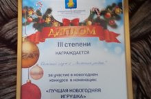 Муниципальный конкурс на приз Главы МО "пгт Камские Поляны", Диплом III степени в номинации "ЛУЧШАЯ НОВОГОДНЯЯ ИГРУШКА". Поздравляем!!! 28.12.2019