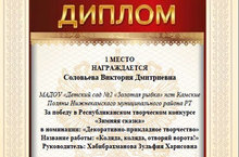 Республиканский творческий конкурс "Зимняя сказка" ЧОУ СМЦ "Развитие" г.Чистополь. Приняло участие 11 воспитанников. Ахметшин Амир, Гребнева Ангелина, Мишакин Даниил, Волков Алексей, Соковой Данил, Соловьева Виктория - Дипломы 1 место, Царев Артем, Асхатова Алсу - Дипломы 2 место, Зайнудинова Аиша, Шляхтина Эмилия, Карягин Демьян - Дипломы 3 место. Поздравляем педагогов, подготовивших призеров конкурса: Сергееву Т.А, Гребневу И.Г., Трифонову Н.В., Ваняшину В.А., Цареву Т.Н., Благодарову И.В., Терехину Н.И., Хабибрахманову З.Х., Торопову Е.Н., Енизеркину Л.Н. 30.01.2020