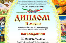 Республиканский конкурс творческих работ среди воспитанников, учащихся и педагогических работников образовательных организаций «СКАЗКА МУДРОСТЬЮ БОГАТА». Итоги конкурса: Беляева Е.И. и Шоробура Ульяна – Диплом II место; Муравьева С.А. и Каримов Дмитрий – Диплом III место; Аввакумова Е.А. и Мукасова Регина – Диплом I степени; Докучаева В.Ф. и Осенков Максим – Диплом II степени. Поздравляем!!! 02.12.2019