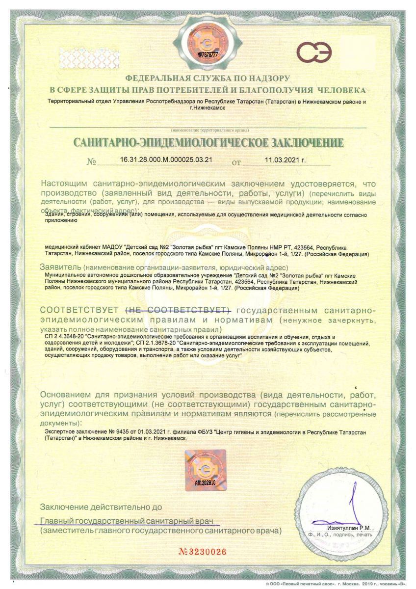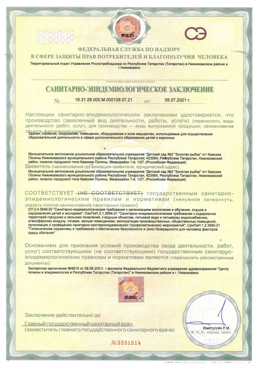 Санитарно-эпидемиологическое заключение от 05.07.2021