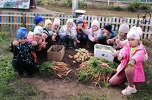 Вот и настала пора собирать урожай! Ребята могли наблюдать рост овощей с нуля, поливали и заботились о них. И наконец смогли собрать богатый урожай! Огород в детском саду знакомит дошкольников с природой и её сезонными изменениями. Посильный труд детей на огороде оказывают влияние на формирование элементарных экологических представлений у дошкольников.