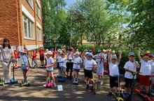 На территории детского сада сегодня прошел велопарад, в котором приняли участие не только дети, но и родители.