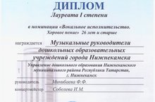 Поздравляем музыкального руководителя Матухину Анастасию Владимировну с дипломом лауреата 1 степени в номинации "Вокальное исполнительство, Хоровое пение" 26 лет и старше Международного фестиваля -конкурса молодых исполнителей "Челны собирает друзей"!