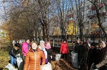 В еженедельном режиме коллектив выходит на санитарные средники, на уборку территории от листвы. И сегодня тоже педагоги потрудились на славу.
