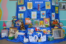 В холле детского сада оформлена выставка поделок сделанная руками родителей "Удивительное рядом"