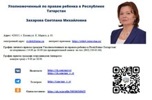 В Республике Татарстан назначен новый Уполномоченный по правам ребенка – Захарова Светлана Михайловна.