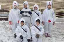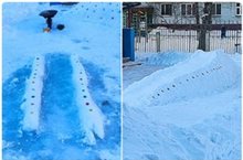 Не смотря на морозную погоду на территориях участков появились забавные фигуры, а также построили горки, колодцы и дорожки.