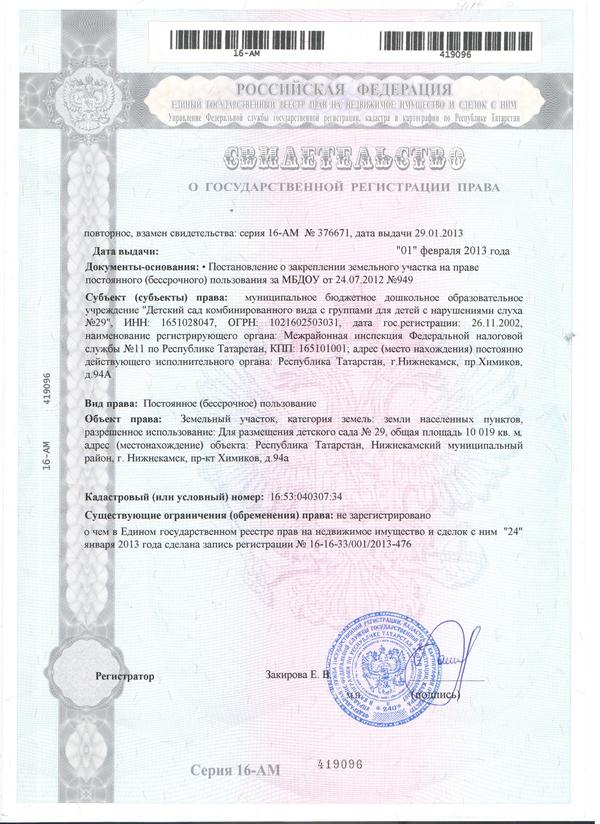 Свительство о государственной регистрации права земля