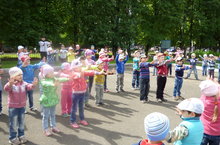 Сегодня в ходе празднования Международного Дня Семьи в детском саду провели "Семейные хороводы". Мероприятие прошло в формате флэшмоба "Семейный хоровод"
