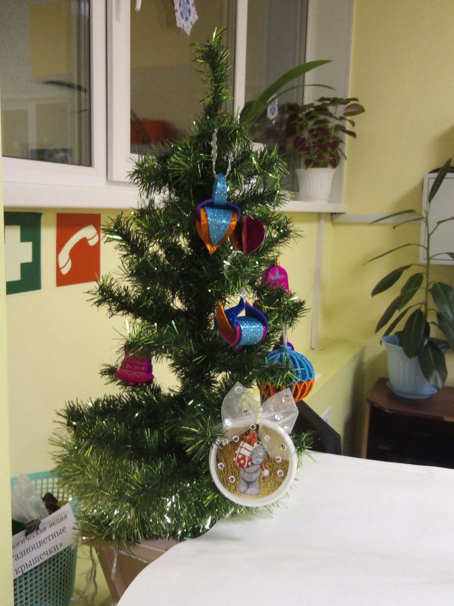 Новогодние поделки из пластиковых крышек