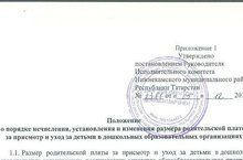 Постановление об утверждении размера родительской платы за присмотр и уход за детьми в ДОУ НМР на 2015 год 18.12.2014