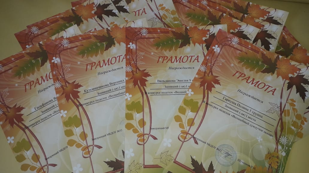 В детском саду прошла выставка поделок «Волшебный сундучок осени». Родительским комитетом поделки были рассмотренны и выбраны победители.
