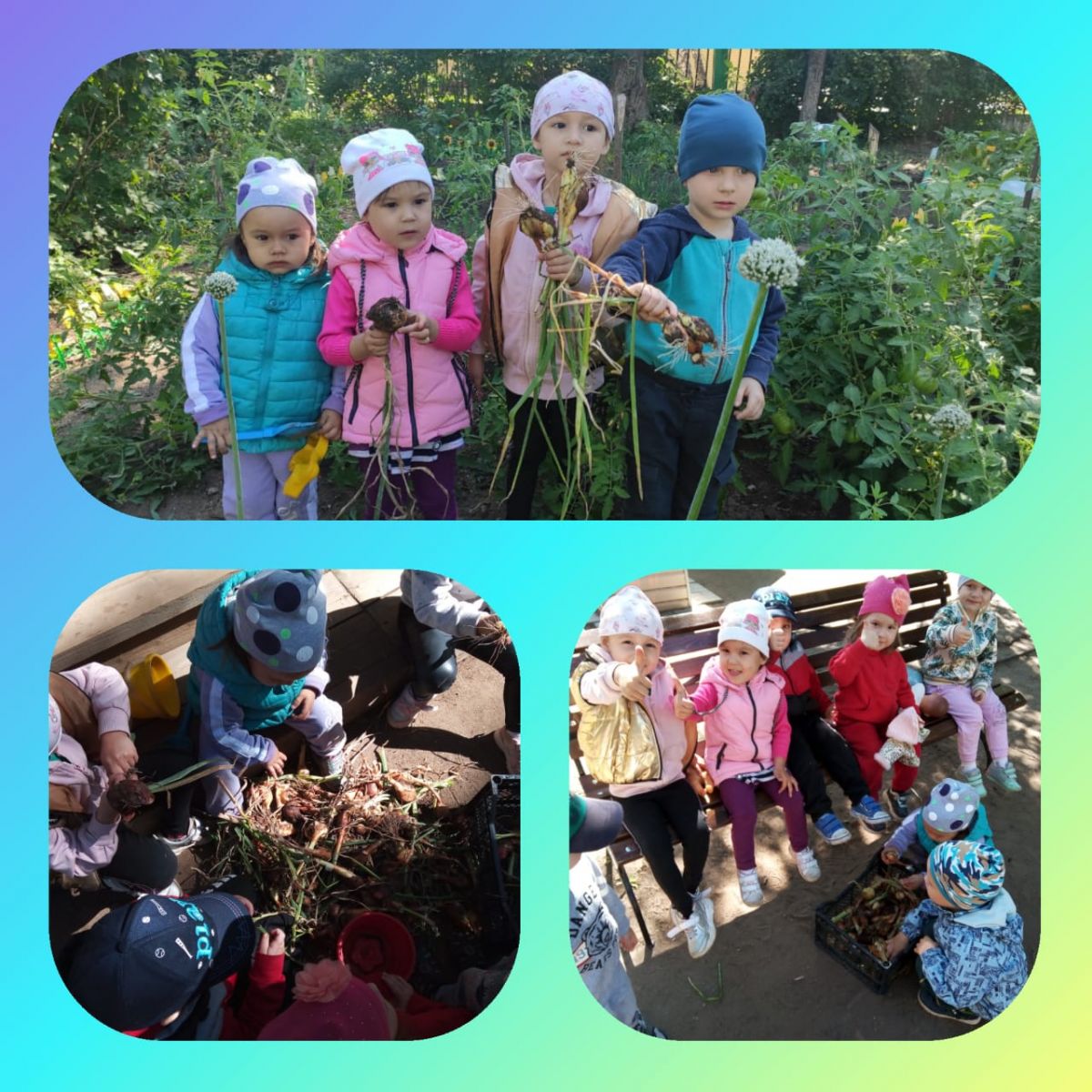 Опубликовано: 14.08.2020Всё лето наблюдали, поливали, сорняки мы убирали. Силы много потеряли - урожай мы свой собрали!