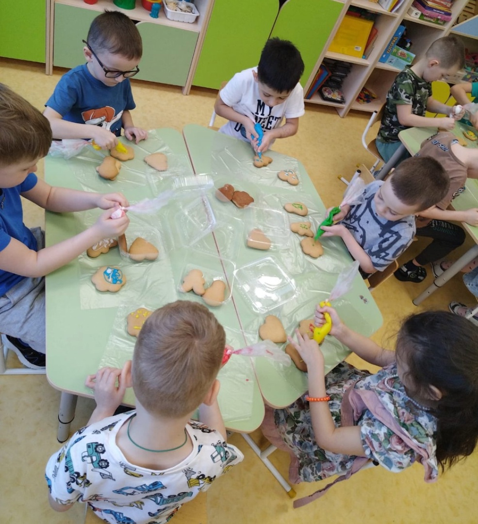 Опубликовано: 22.02.2024Пряники, самое любимое на Руси лакомство, выпекали с давних времен. Угощали ими и малых деток и дорогих гостей, печатали в формах и украшали сахарными глазурями. Вот и в нашем детском саду для детей дошкольного возраста прошел мастер-класс по росписи имбирных пряников глазурью. В конце занятия ребята рассматривали и любовались красивыми, расписными пряниками, которые у них получились. Все участники мастер-класса унесли домой вкусный и красивый подарок, сделанный своими руками!