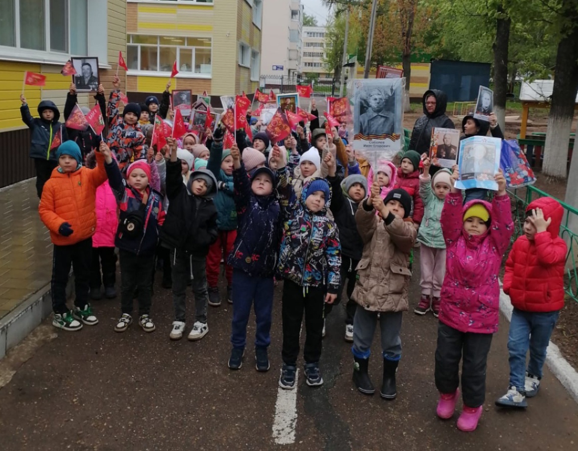Опубликовано: 08.05.2024Бессмертный полк — это дань уважения героям, павшим на полях сражений, погибшим от бомбежки в осажденных городах и селах. Ребята нашего сада каждый год принимают участие в акции. И сегодня они вновь возьмут фотографии ветеранов Великой Отечественной войны, чтобы вспомнить героев, которые спасли нашу Родину от врагов.