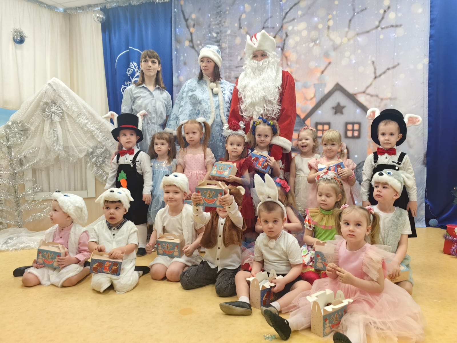 Опубликовано: 28.12.2024Время новогодних утренников — это время красивой, доброй сказки, которая приходит в каждый детский сад в конце каждого года с наступлением зимних холодов. Новый год - это сказочный праздник, любимый праздник всех детей. Вот и в нашем детском саду прошли новогодние праздники. Атмосфера волшебства и сказки царила на каждом утреннике, Дед Мороз и Снегурочка вводили всех в путешествия по зимним сказкам. На утренниках дети с особым удовольствием пели, водили хороводы вокруг елки, читали стихи и танцевали. Праздники получились очень весёлыми и радостными.