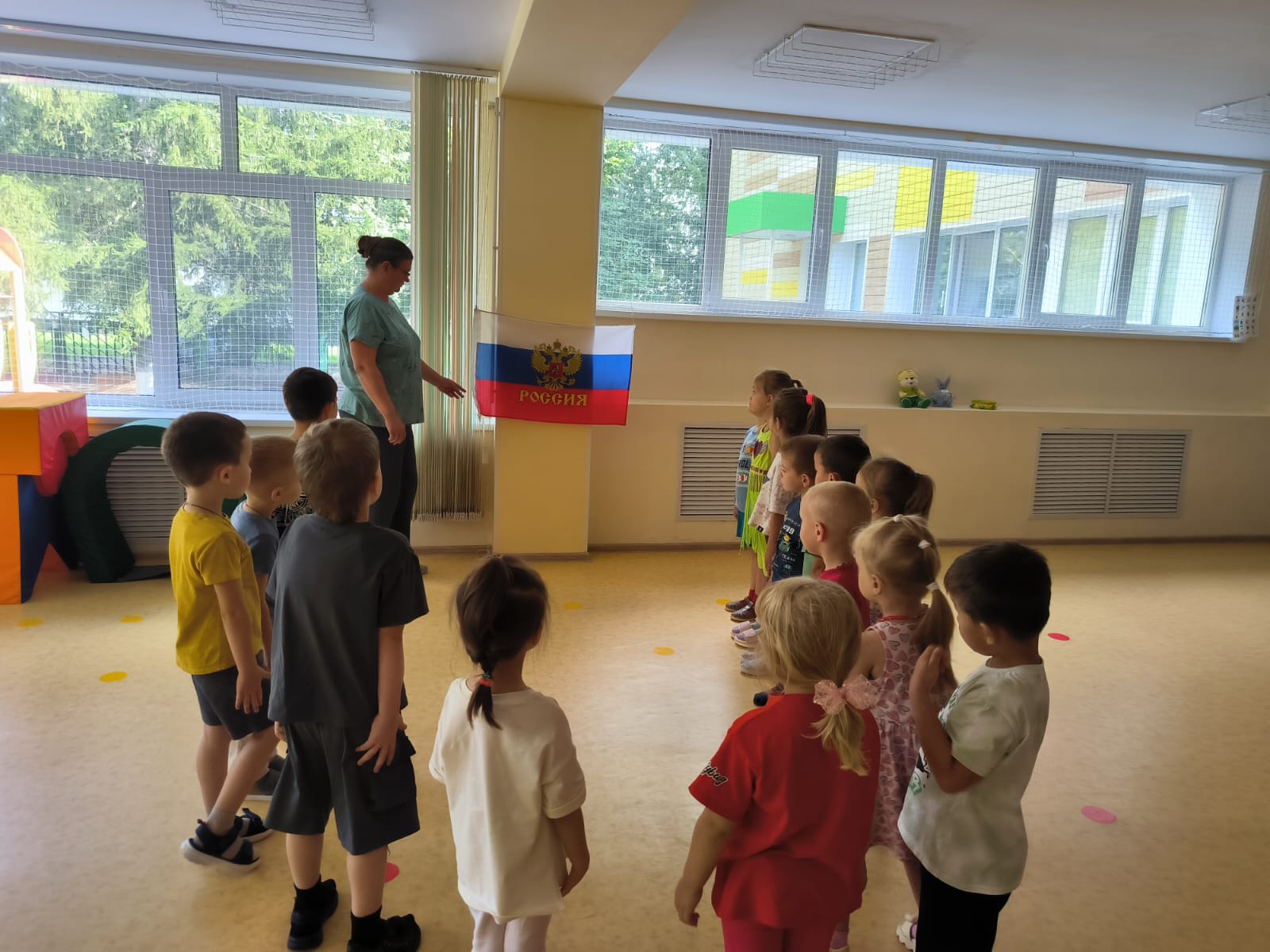 Опубликовано: 22.08.2025Ежегодно 22 августа в России отмечается День Государственного флага Российской Федерации. Это отличный повод рассказать детям об одном из символов нашей страны, ведь приобщение детей к государственной символике РФ – это одна из приоритетных задач в патриотическом воспитании. В рамках празднования Дня Государственного флага Российской Федерации, в нашем детском саду был организован досуг, целью которого стало формирование нравственно — патриотических качеств, воспитания у дошкольников любви к своей Родине. Все дети проявили любознательность и творческую активность во время мероприятий. Все зарядились хорошим настроением и позитивом!