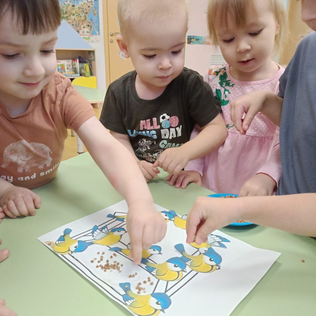 Опубликовано: 12.11.2025Осень близиться к своему завершению. Вот и наступил последний осенний месяц. С давних пор на Руси 12 ноября отмечался Синичкин день, т. е., день встречи зимующих птиц. Люди готовили кормушки, читали стихи про птиц, загадывали загадки, играли и просто любовались зимними птахами. Вот и в нашем детском саду воспитанники второй младшей группы вместе с воспитателем Камалеевой Г.Р. поговорили о Синичкином дне и изготовили коллективную аппликацию «Синички на кормушке».