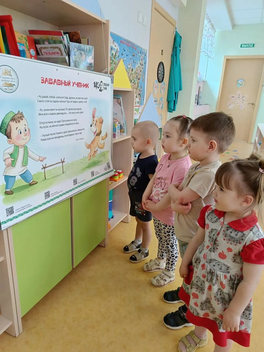 Опубликовано: 24.04.2026Татарстанда игълан ителгән туган тел көне милли шәхес, татар шагыйре Габдулла Тукай туган көнендә билгеләнеп утә. 2026 нчы елда Г. Тукайга 140 ел тулу уңаеннан 1 атнага балалар бакчасы шагыйрьнең иҗат йортына әверелде. Аның әсәрләренең геройлары көн саен балаларга кунакка төрле биремнәр алып килделәр, балаларның иҗат жимешләре белән таныштылар. Бу форматтагы чаралар тел усешенә этәреп кенә калмый, милли мирасны саклап калуның нигезе булып тора