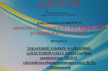 25.10.2019 г. педагоги ДОО Алексеева О.Н., Токарева Э.Ф. приняли участие в зональном конкурсе мастер-классов «Ярмарка педагогических идей-2019». По итогам конкурса педагоги удостоены Диплома III степени.