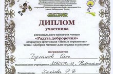 Поздравляем воспитанника группы №8 Буланова Олега, принявшего участие в региональном фестивале "Новые горизонты" в конкурсе чтецов "Радуга доброречи". Фестиваль был организован центром дошкольного развития "Светлячок" города Набережные Челны.