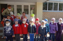 Сегодня в детском саду прошла объектовая тренировка. Воспитанники по команде "Пожар!" Одели маски, бейджики и эвакуировались в общеобразовательный лицей №14. Тренировка прошла в спокойной рабочей обстановке.