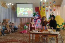 Под руководством педагогов и музыкального руководителя Некрасовой Т.Н. воспитанники старших групп представили драматизацию сказок Л.Н.Толстого"Лиса и журавль", "Три медведя", "Кот,петух и лиса" для детей 1 младших групп в музыкальном зале. Ребята очень переживали, но у них все получилось, образы героев сказки им удались на славу! А в завершении все зрители громко аплодировали героям сказки.