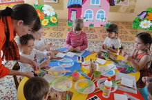 В рамках всероссийской акции «Я талантлив » педагоги Ахметова Марина Анатольевна и Рашоян Гульнара Рашитовна пригласили из дворого клуба ПК"Олимпия" педагога –организатора дополнительного образования Кадырову Гульнару Олеговну и совместно провели в подготовительной к школе группе № 6 мастер класс по изготовлению поделок в технике «объемная аппликация с элементами квилинга» на тему:"Цветы для Маши".