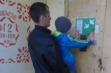Акция ко Дню Великой Победы «Победа в сердце каждого!»(развешивание поздравительных плакатов в микрорайоне ) 04.05.2015