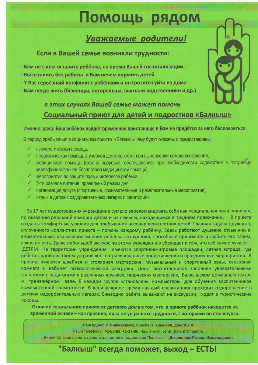Информация о социальном приюте детей и подростков " БАЛКЫШ"
