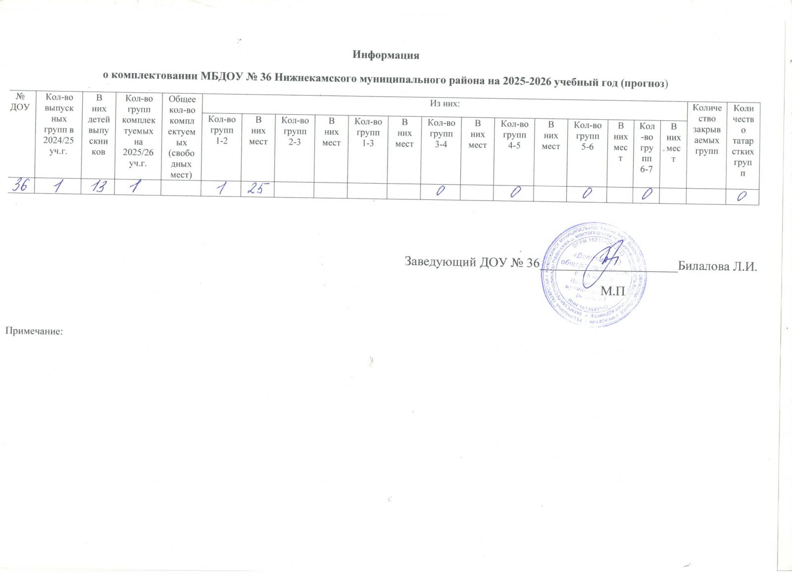 Справки по телефону (8555) 43-13-63Информация о комплектовании МБДОУ №36