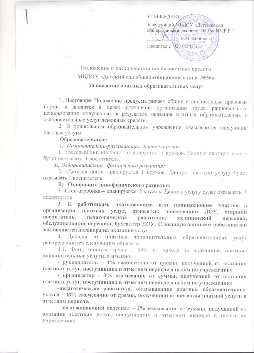 Положение о расходовании внебюджетных средств МБДОУ "Детский сад общеразвивающего вида № 36" за оказание платных образовательных услуг
