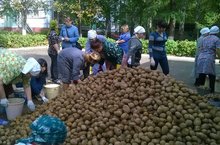 В овощехранилище детского сада привезли картошку. Всем коллективом дружно и быстро был убран нужный для детей овощ!
