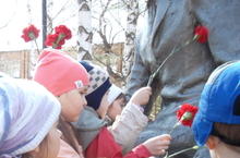 Балалар Габдулла Тукай һәйкәленә экскурсиягә бардылар һәм аңа чәчәкләр салдылар.