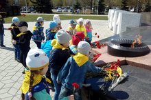 Каждый год наши воспитанники ходят на экскурсию к вечному огню и возлагают цветы. У вечного огня проводится беседа и знакомство с памятниками погибших на войне,мраморной плитой,где выгравирвоаны имена героев.