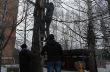 Наши родители повесили самые лучшие скворечники на своих участках.Окон нет. Есть только лаз, Да жердинка - напоказ.Прилетят весной скворцы, Скажут: «Ай, да молодцы!»Будет радость и веселье, Птицы справят новоселье, Натаскают пух, солому. К своему привыкнут дому.