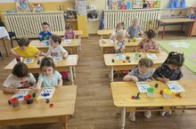 Ребята второй младшей группы №9 почувствовали себя настоящими художниками,ведь взяв в руки кисточку и разноцветную гуашь и словно произошло волшебство,будто ожила тучка,каждая капелька и каждый лепесточек цветка.И картинка заиграла яркими красками,а настроение стало по весеннему очень хорошим.