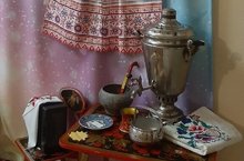 В холле детского сада силами сотрудников и родителей организована выставка "Дружба народов", на ней Вы можете посмотреть предметы быта и одежды народов Поволжья