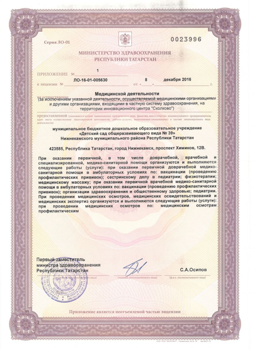 - Положение об организации медицинского обеспечения воспитанников в МБДОУ №39 НМР РТ