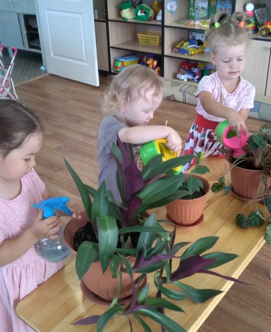 Опубликовано: 16.08.2023Воспитатель младшей группы Фарида Раимовна, в рамках трудовой деятельности обучает детей правильно ухаживать за комнатными растениями????. В процессе ухода за растениями дети узнали, что для роста цветов нужны земля, вода и воздух, а также научились правильно держать лейки, поливать растения и протирать крупные листочки влажной тряпочкой.
